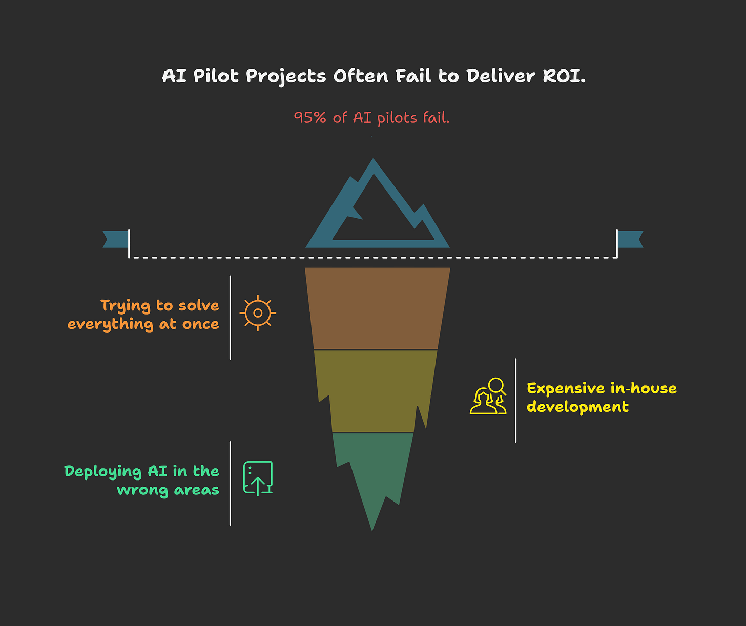Deploying AI in the wrong areas – low-value, high-visibility tasks rarely yield a return on investment.
